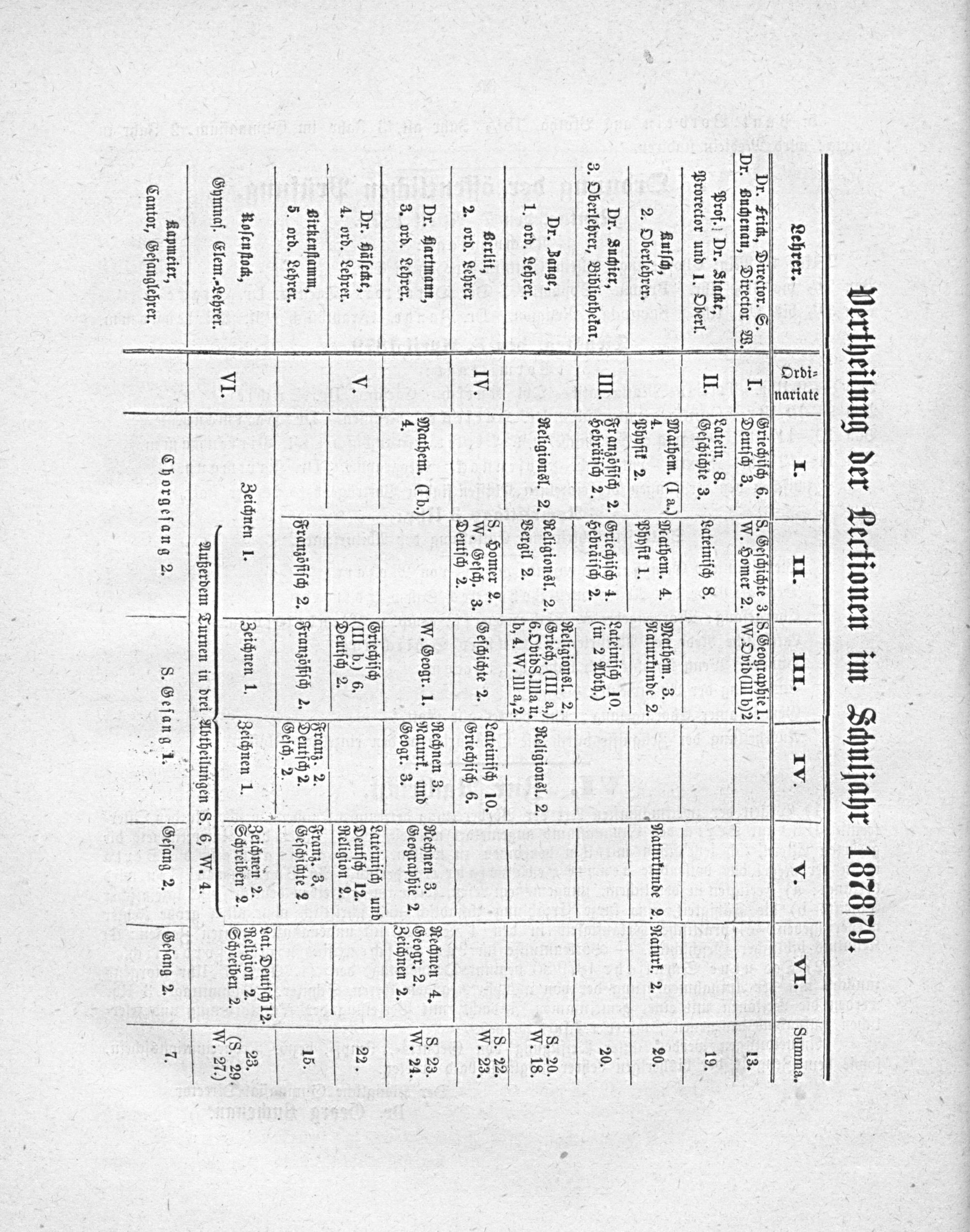 Vertheilung der Lectionen im Schuljahr 187379.