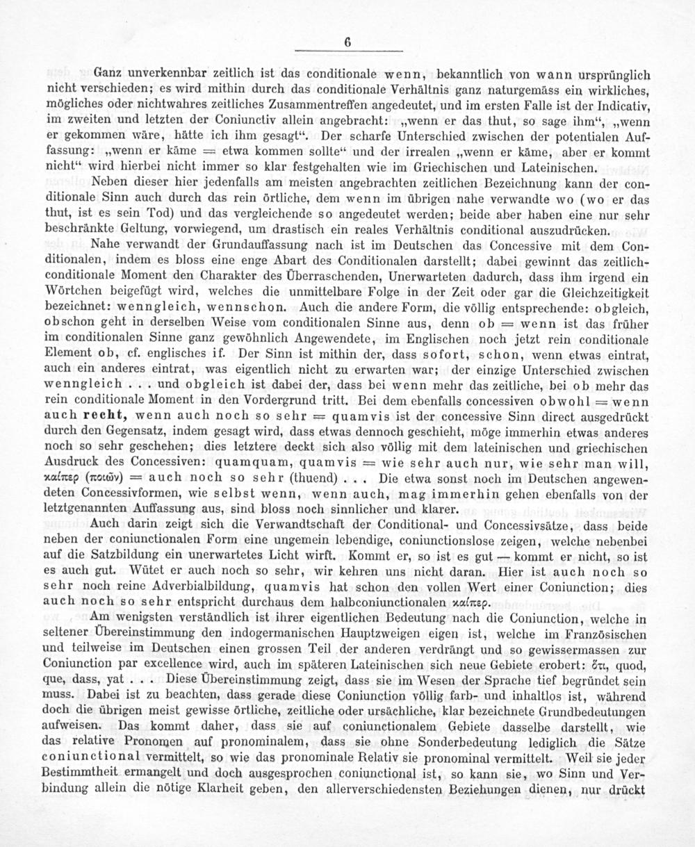 Auch darin zeigt sich die Verwandtschaft der Conditional- und Concessivsätze, dass beide neben der coniunctionalen Form eine ungemein lebendige, coniunctionslose zeigen, welche nebenbei auf die Satzbildung ein unerwartetes Licht wirft. Kommt er, so ist es gut— kommt er nicht, so ist es auch gut. Wütet er auch noch so sehr, wir kehren uns nicht daran. Hier ist auch noch so sehr noch reine Adverbialbildung, quamvis hat schon den vollen Wert einer Coniunction; dies auch noch so sehr entspricht durchaus dem halbconiunctionalen αεασ.