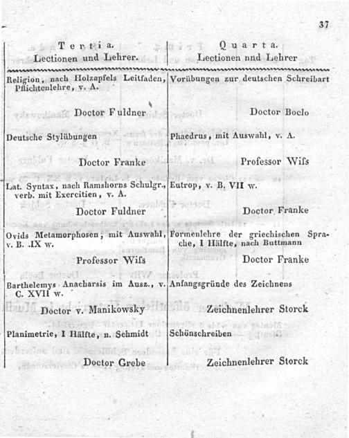 Doctor Boclo Phaedrus, mit Auswahl, v. A. Professor Wilſs Eutrop, v. B. VII w. Doctor. Franke Formenlehre der griechischen Spra- che, I Hälfte, nach Buttmann Doctor Franke Anfangsgründe des Zeioimens