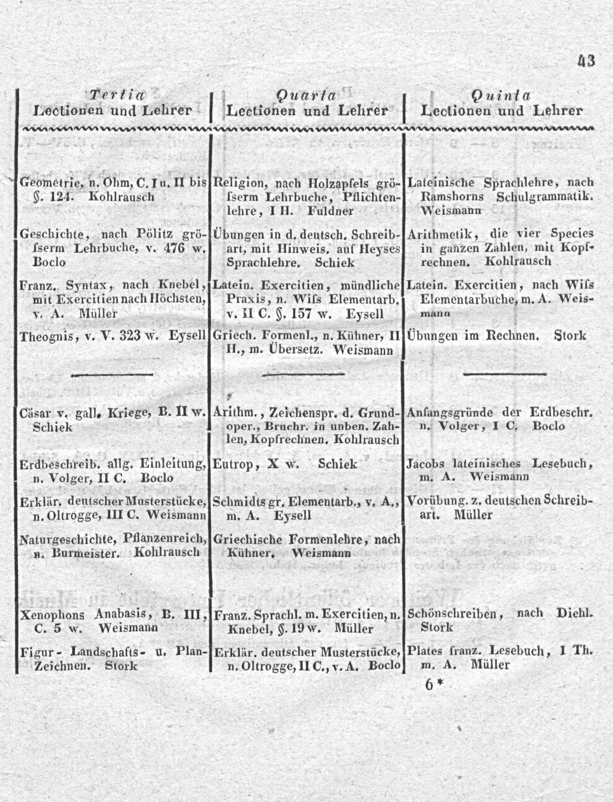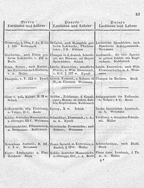 Ouinta Lectionen und Lehrer
