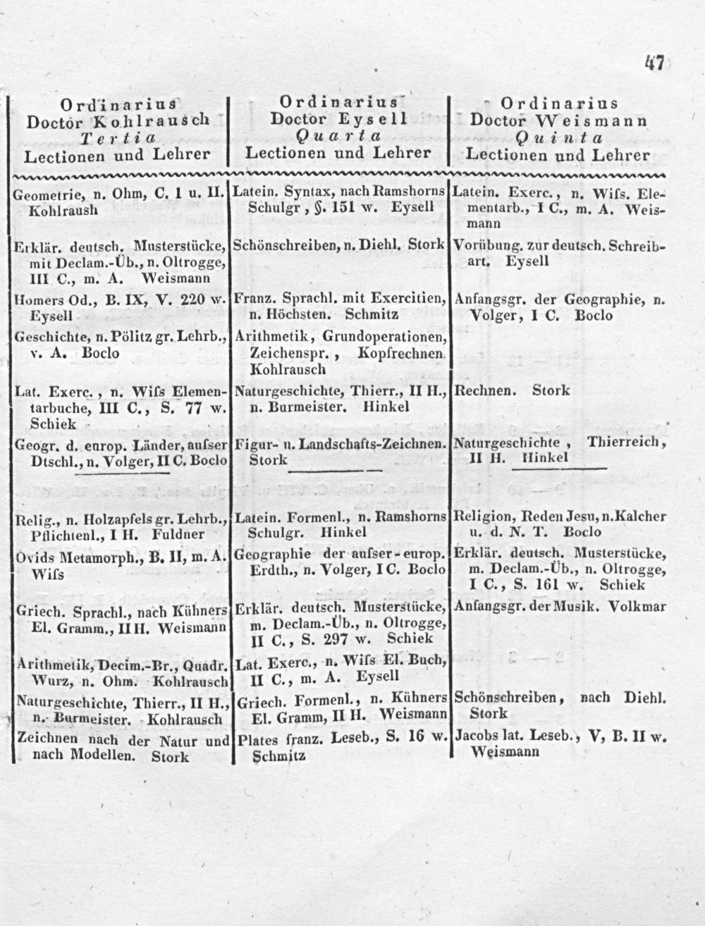 Ordinarius Doctor Weismann Ouinta Lectionen und Lehrer