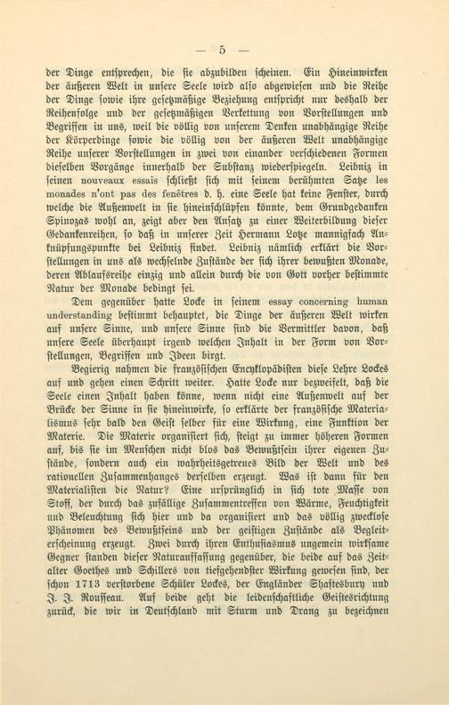 Dem gegenüber hatte Locke in ſeinem essay concerning human understanding beſtimmt behauptet, die Dinge der äußeren Welt wirken auf unſere Sinne, und unſere Sinne ſind die Vermittler davon, daß unſere Seele überhaupt irgend welchen Inhalt in der Form von Vor⸗ ſtellungen, Begriffen und Ideen birgt.
