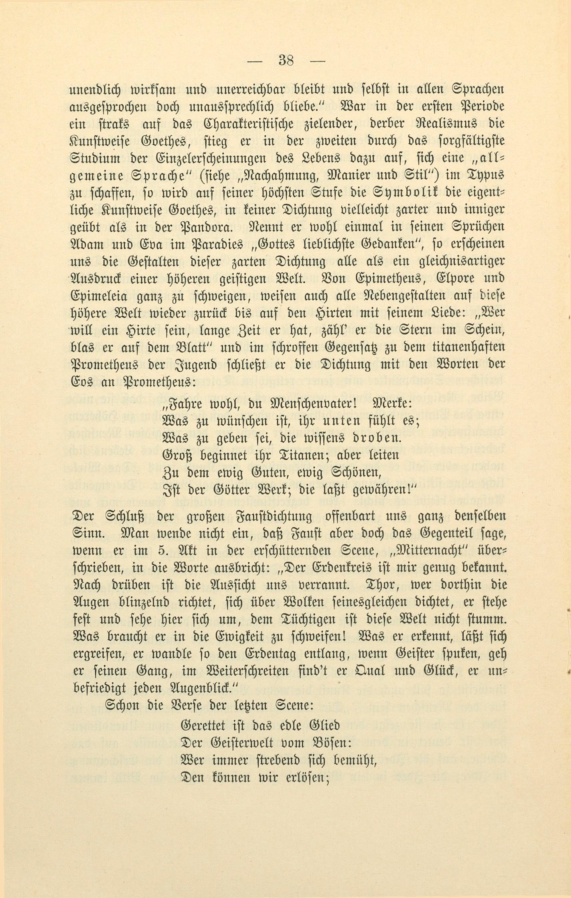 „Fahre wohl, du Menſchenvater! Merke: Was zu wünſchen iſt, ihr unten fühlt es; Was zu geben ſei, die wiſſens droben. Groß beginnet ihr Titanen; aber leiten Zu dem ewig Guten, ewig Schönen,