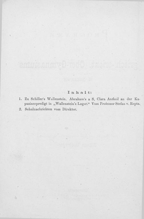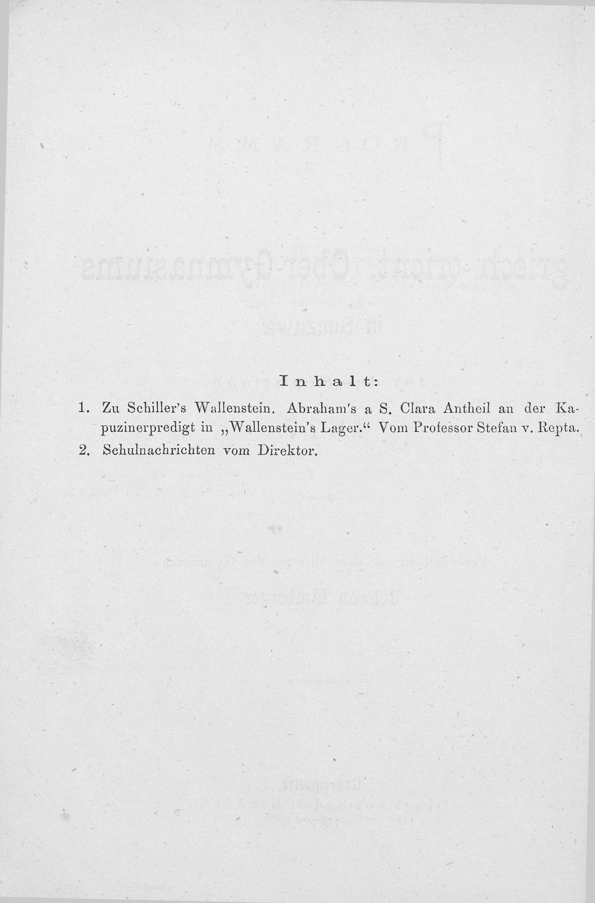 1. Zu Schiller's Wallenstein. Abraham's a S. Clara Antheil an der Ka- puzinerpredigt in„Wallenstein's Lager.“ Vom Professor Stefan v. Repta.