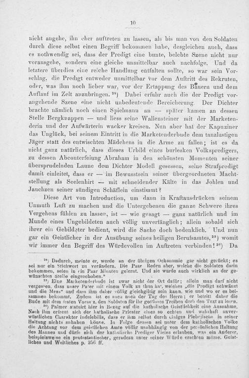 ²⁹) Eine Marketenderbude ist zwar nicht der Ort dafür; allein man darf nicht vergessen, dass unser Pater mit einem Volk zu thnn hat, welches„die Predigt schwänzt und die Mess“ und dass ihm daher völlig gleichgiltig sein kann, wie und wo er es bei- sammen bekommt. Zudem ist es auch noch der Tag des Heren; er betritt daher die Bude mit dem festen Vorsalz, den Soldaten für ihr gottloses Treiben derb den Text zu lesen.