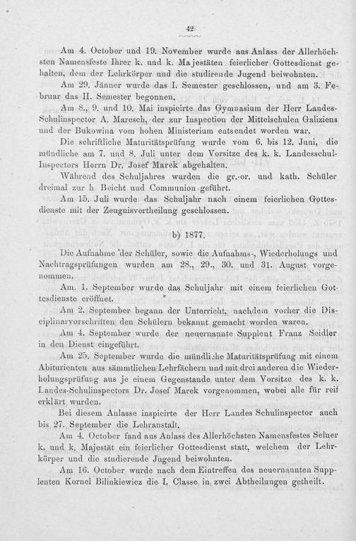 Am 8., 9. und 10. Mai inspicirte das Gympasium der Herr Landes- Schulinspector A. Maresch, der zur Inspection der Mittelschulen Galiziens und der Bukowina vom hohen Ministerium entsendet worden war.