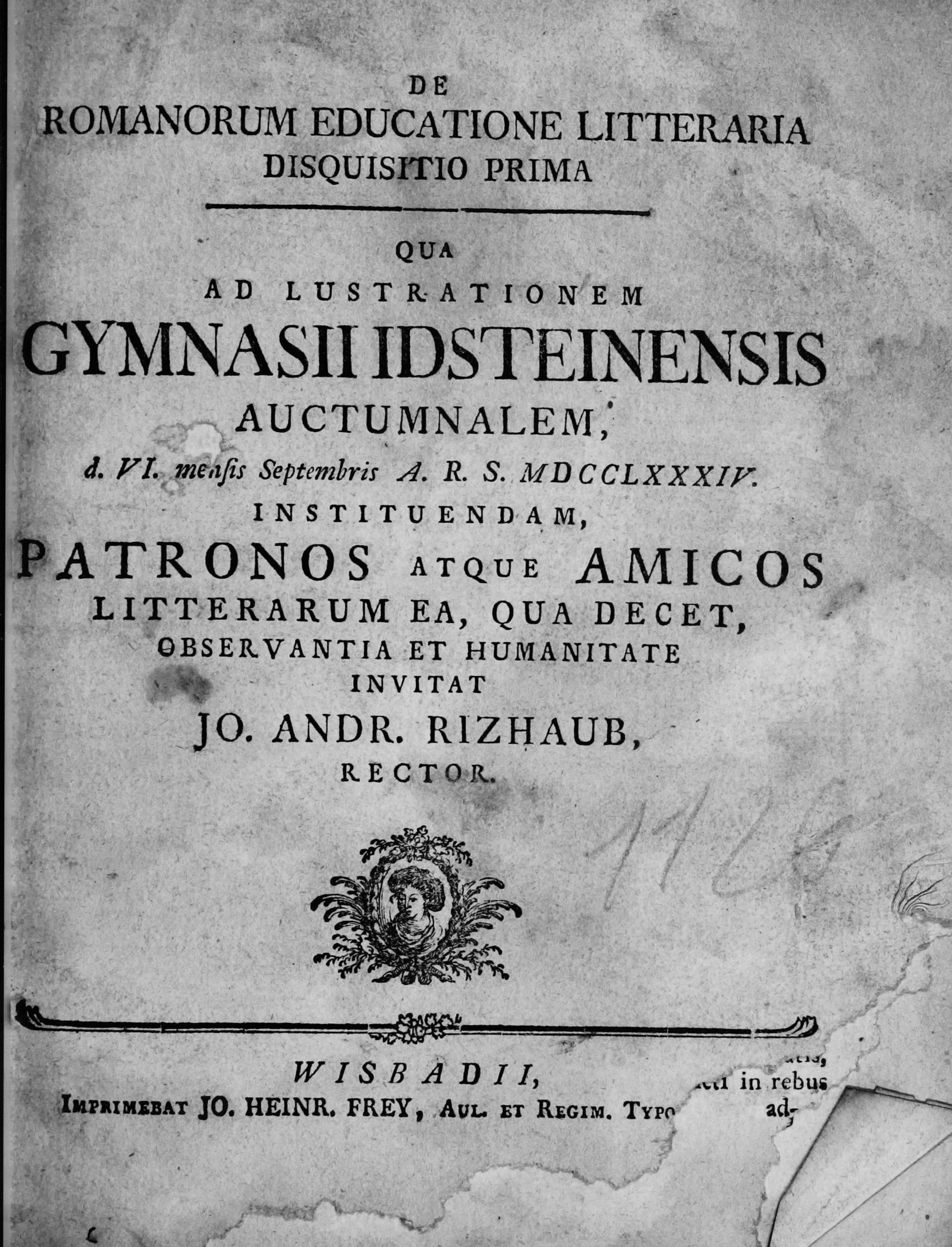 Disquisitio 1 (1784) Qua ad lustrationem Gymnasii Idsteinensis auctumnalem, d. 6. mensis Septembris 1784