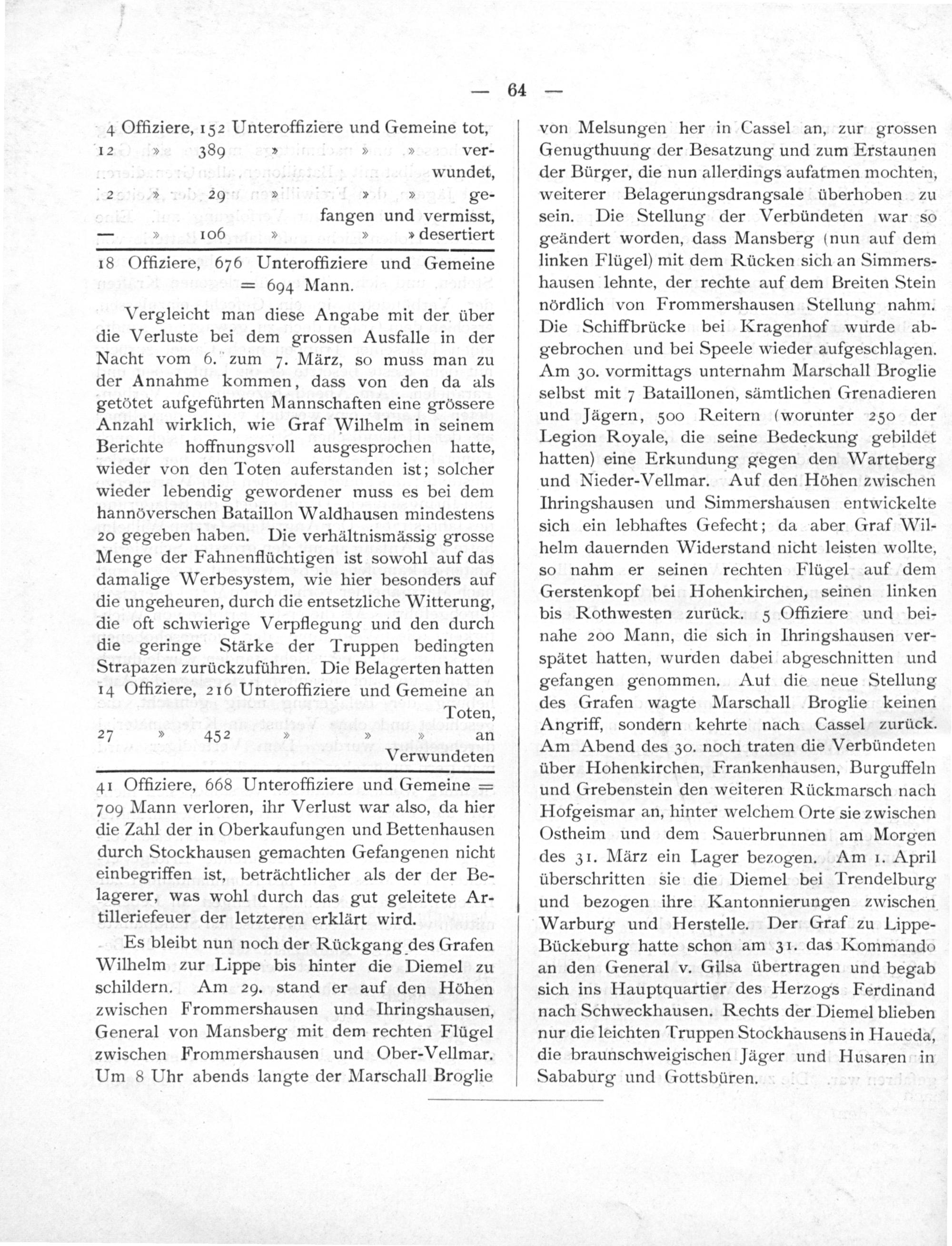 [2.]. I. Die Kämpfe an der Mündener Strasse im Jahre 1758 (Schluss). II. Die Ereignisse der Jahre 1759 und 1760