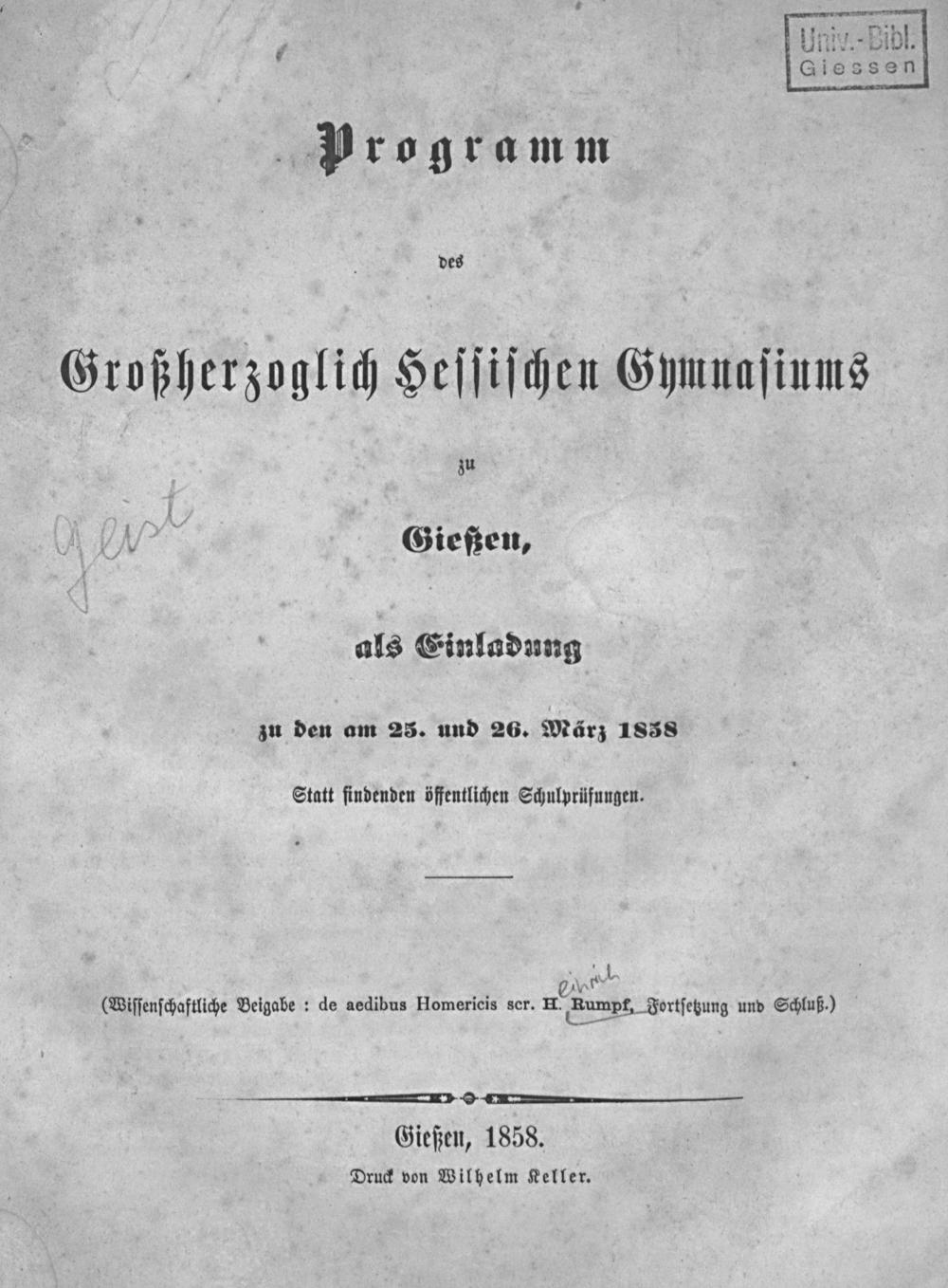 3 (1858) Altera pars commentationis "de aedibus Homericis" ad finem perducitur