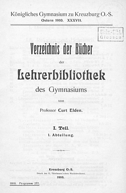 Verzeichnis der Bücher der Lehrerbibliothek des Gymnasiums