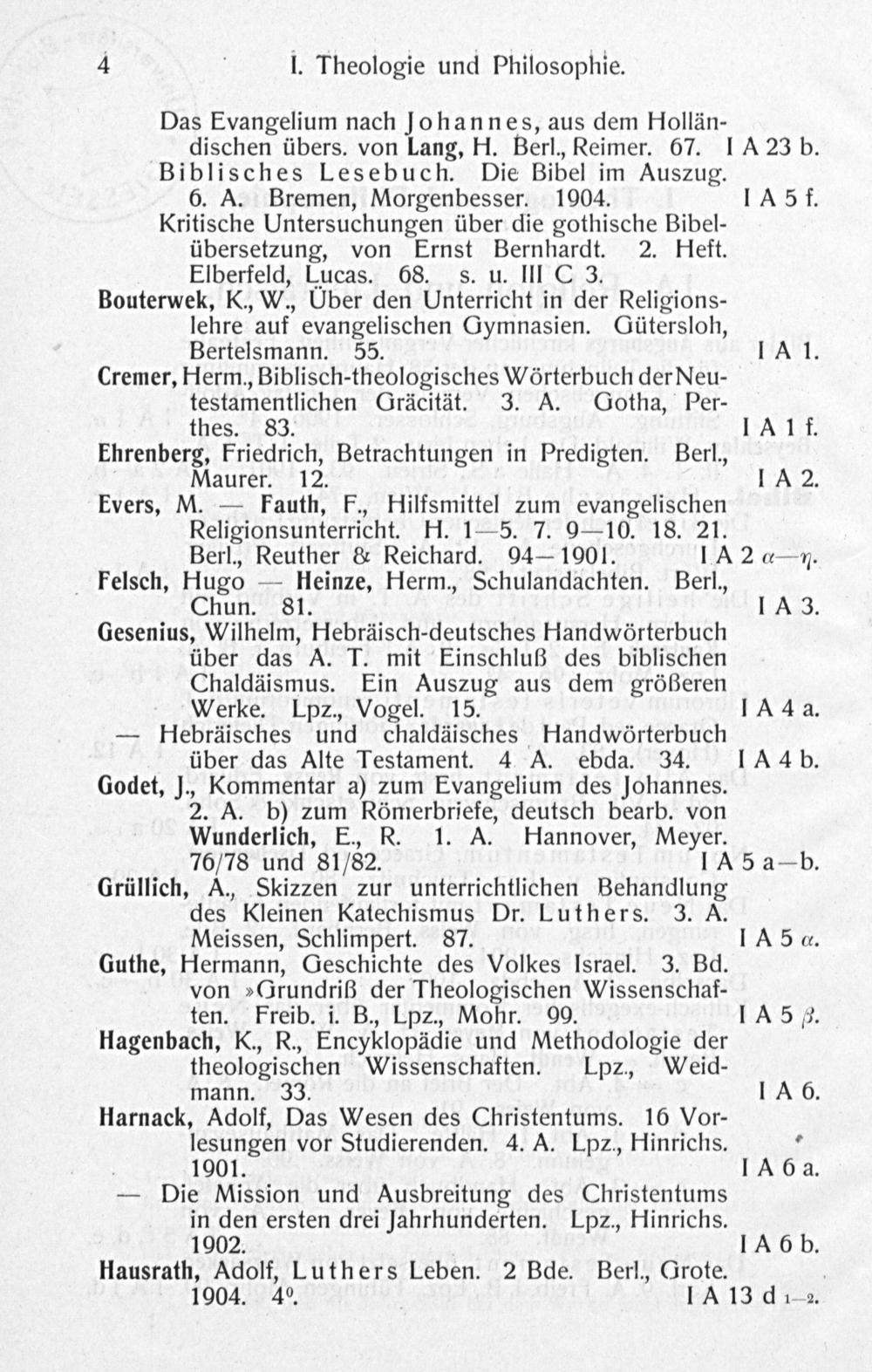 Verzeichnis der Bücher der Lehrerbibliothek des Gymnasiums
