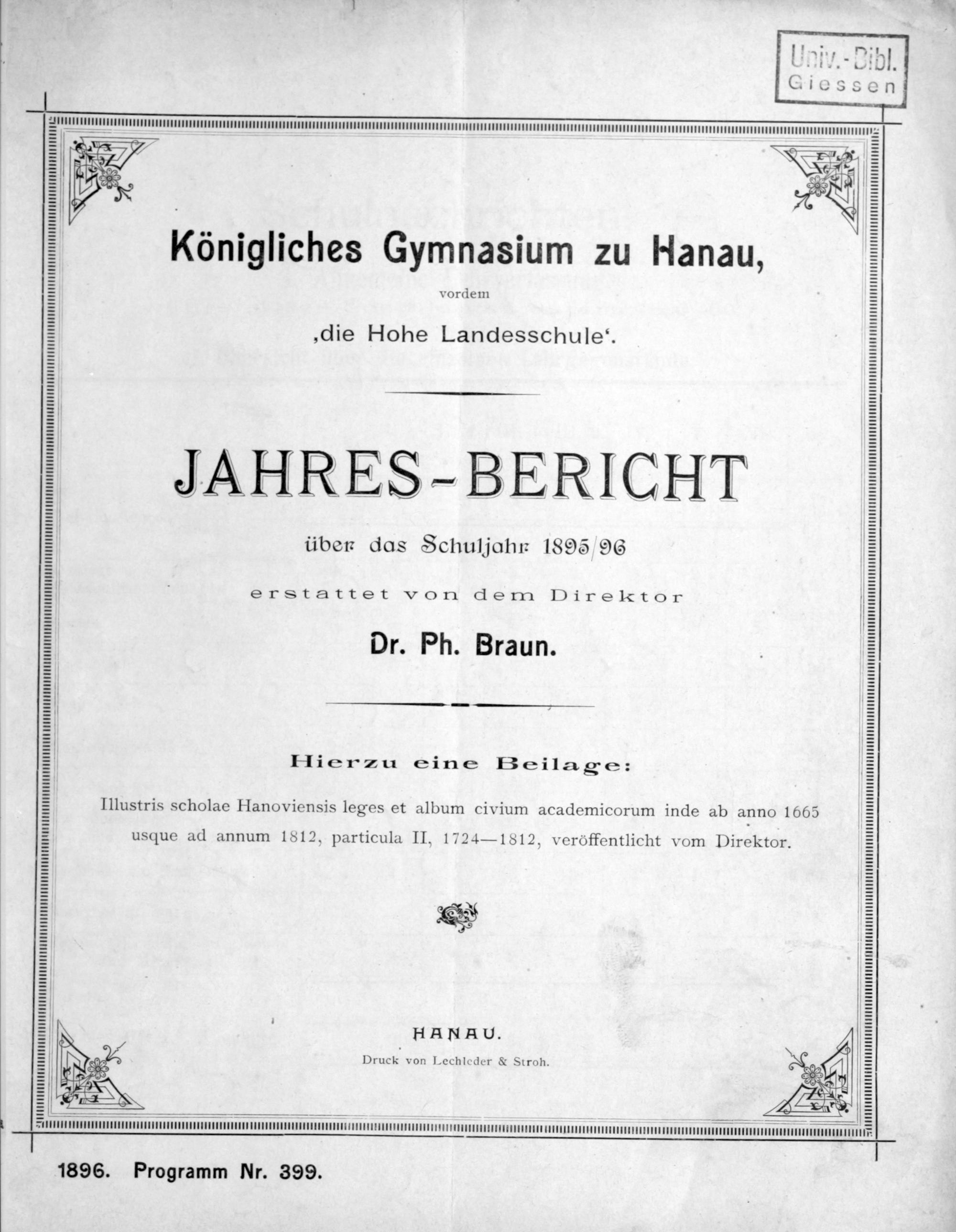 Illustris Scholae Hanoviensis leges et album civium academicorum inde ab anno 1665 usque ab annum 1812