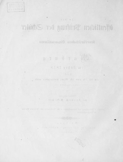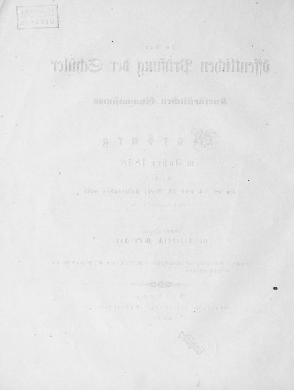 Zu der öffentlichen Prüfung der Schüler des Kurfürstlichen Gymnasiums zu Marburg im Jahre ... ladet ergebenst ein der Gymnasialdirector