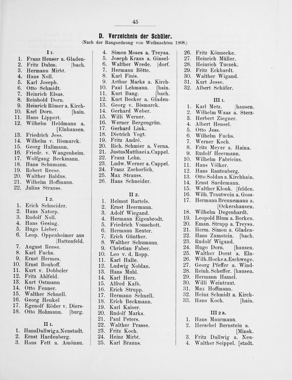 [Ockershausen. Wilhelm Degenhardt. Leopold Blum a. Borken. Eman. Strupp a. Treysa. Herm. Simon a. Gladen-
