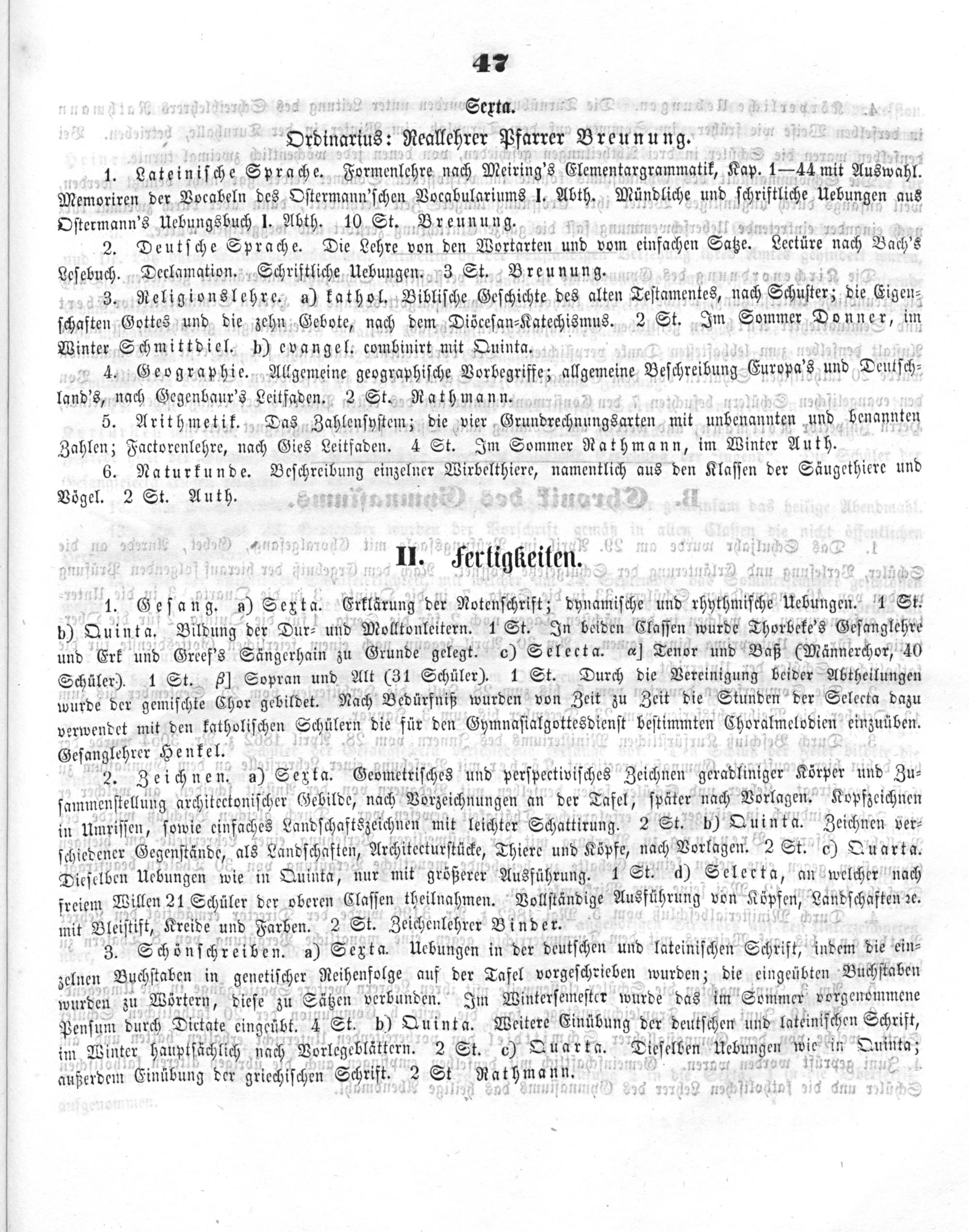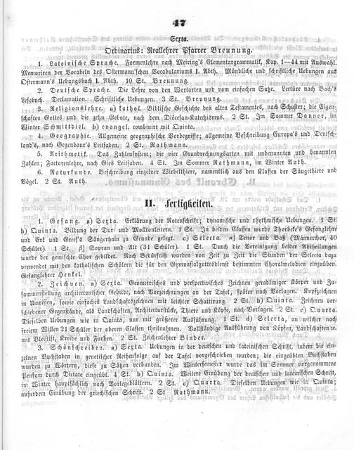 1. Lateiniſ che Sprache. Formenlehre nach Meiring's Elementargrammatik, Kap. 1— 44 mit Auswahl. Memoriren der Vocabeln des Oſtermann’ſchen Vocabulariums I. Abth. Mündliche und ſchriftliche Uebungen aus Oſtermann's Uebungsbuch l. Abth. 10 St. Breunung.