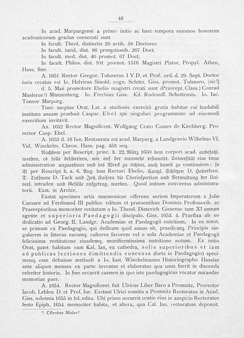 A. 1651 Rector Gregor. Tulsnerus IV D. et Prof. ord. d. 29. Sept. Doctor iuris creatus est Ie. Helvicus Sinold. cogn. Schütz. Giss. promot. Tulsnero.[sie!]