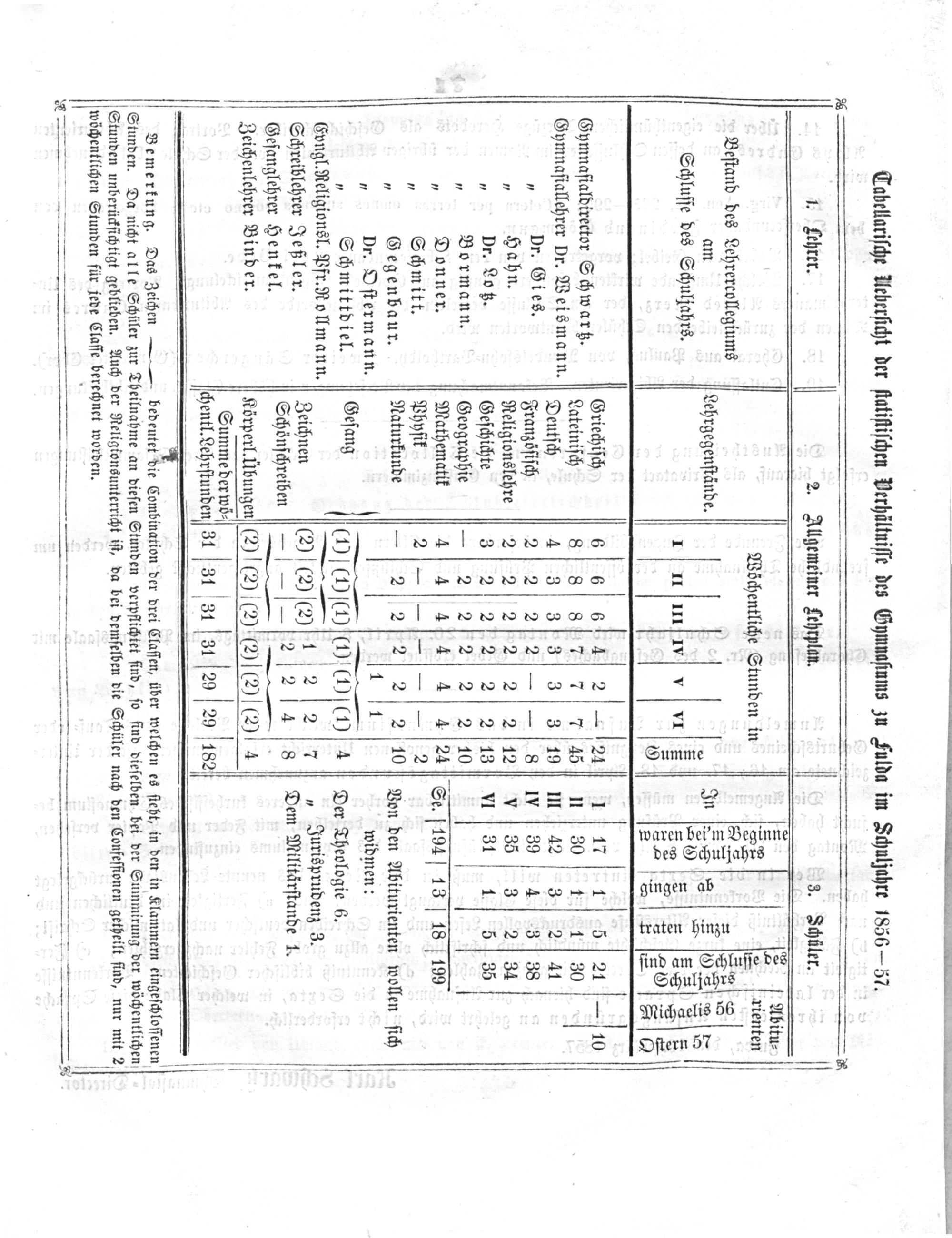 Tobellariſche Ueberſicht der ſtatiſtiſchen Verhältniſſe des Gymnaſiums zu Fulda im Schuljahre 1856— 57.