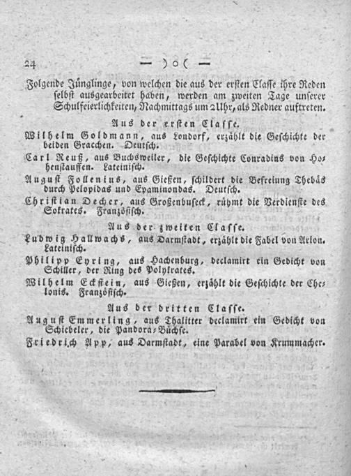 Wilhelm Eckſtein, aus Gießen, erzaͤhlt die Geſchichte der Che⸗ lonis. Franzoͤſiſch. Aus der dritten Claſſe.