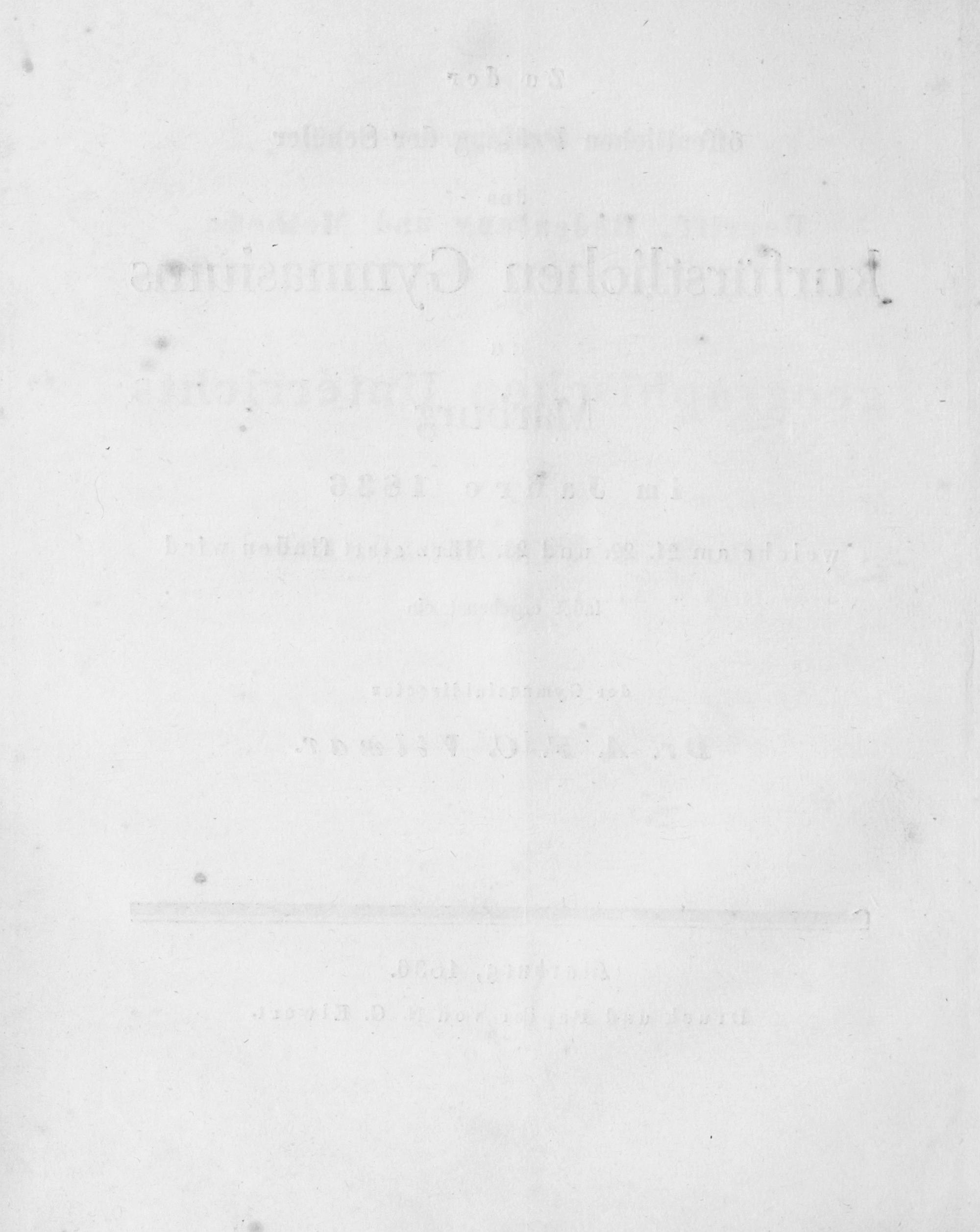 Zu der öffentlichen Prüfung der Schüler des Kurfürstlichen Gymnasiums zu Marburg im Jahre ... ladet ergebenst ein der Gymnasialdirector