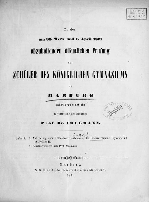 Marburg. N. G. Elwert'sche Universitäts-Buchdruckerei.