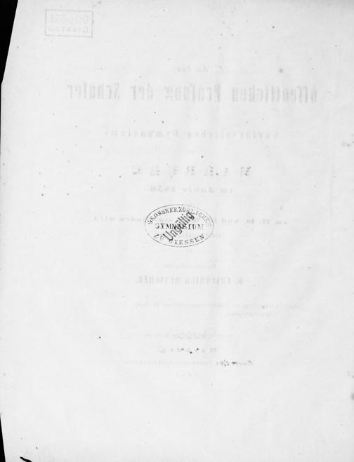 Zu der öffentlichen Prüfung der Schüler des Kurfürstlichen Gymnasiums zu Marburg im Jahre ... ladet ergebenst ein der Gymnasialdirector