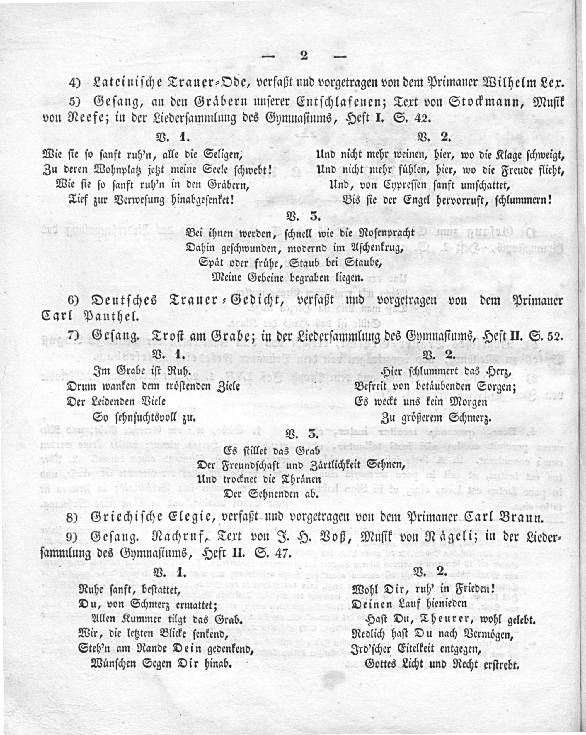9) Geſang. Nachruf, Text von J. H. Voß, Muſik von Naͤgeliz in der Lieder⸗ ſammlung des Gymnaſiums, Heft II. S. 47.