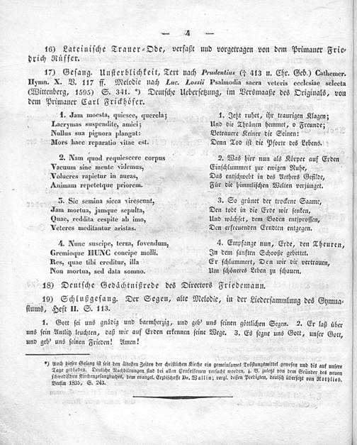 18) Deutſche Gedaͤchtnißrede des Directors Friedemann. 19) Schlußgeſang. Der Segen, alte Melodie, in der Liederſammlung des Gymna⸗