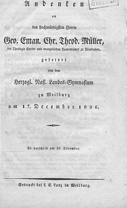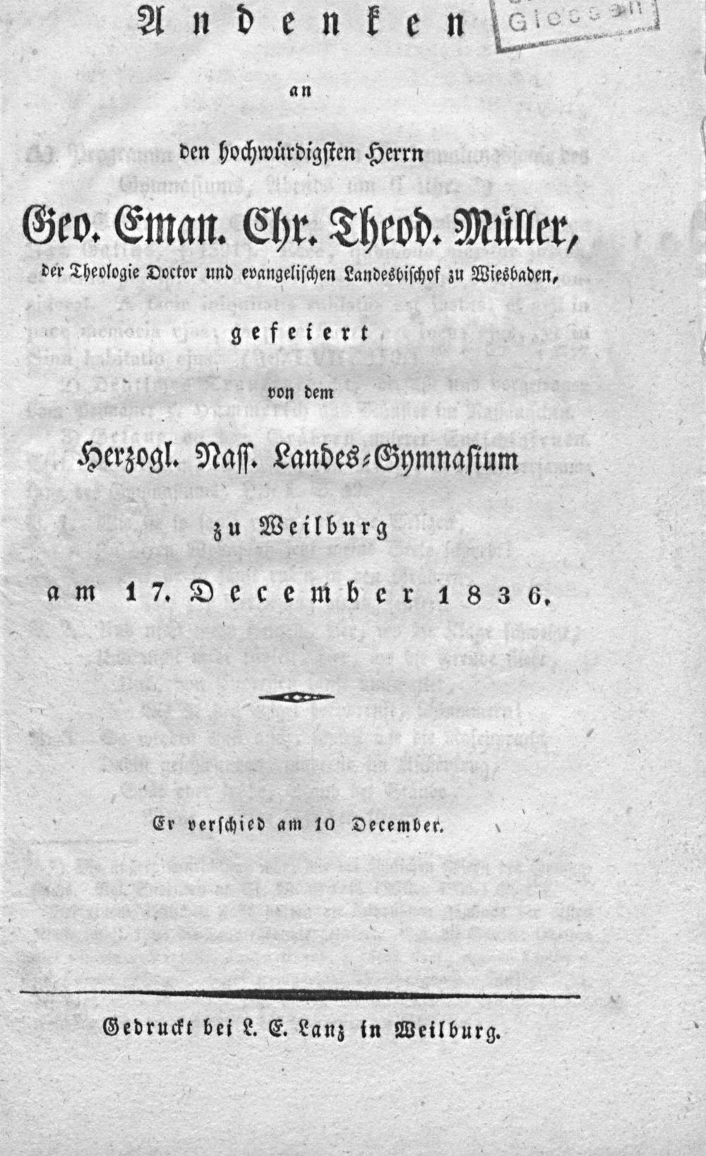 der Theologie Doctor und evangeliſchen Landesbiſchof zu Wiesbaden, gefeiert