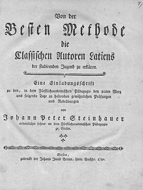 Gieſen, gedruckt bey Johann Jacob Braun, Univ. Buchdr. 1780.