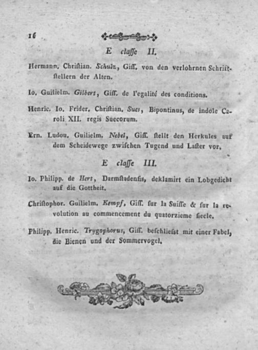 E claſſe III. Io. philipp. de Hert, Darmſtadenſis, deklamirt ein obgeuee auf die Gottheit.