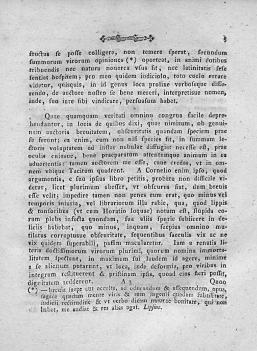 =V= 3 fructus ſe poſſe colligere, non temere ſperat, ſecundum ſfummorum virorum opiniones(*) oporteat, in animi dotibus tribuendis nec natura nouerca vſus ſit, nec latinitatis feſe fentiat hoſpitem; pro meo quidem iudiciolo, toto coelo errare videtur, quisquis, in id genus loca prolixe verboſeque diſſe- rendo, de auctore noſtro ſe bene mereri, interpretisue nomen, inde, fuo iure ſibi vindicare, perfuaſum habet.