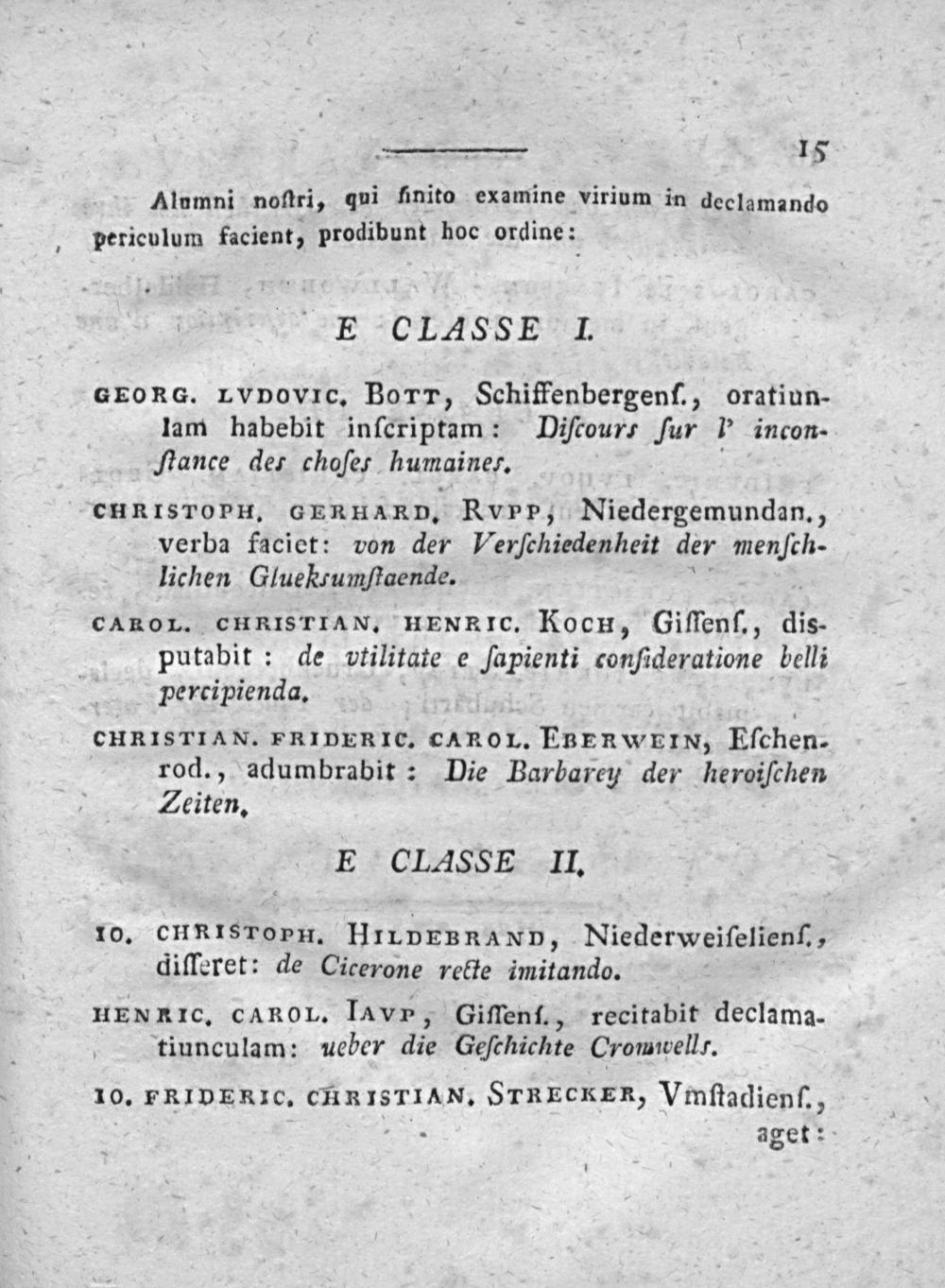 10. cHRISTOPH. HILDEBRAND, Niederweiſelienſ., diſſeret: de Cicerone recte imitando.