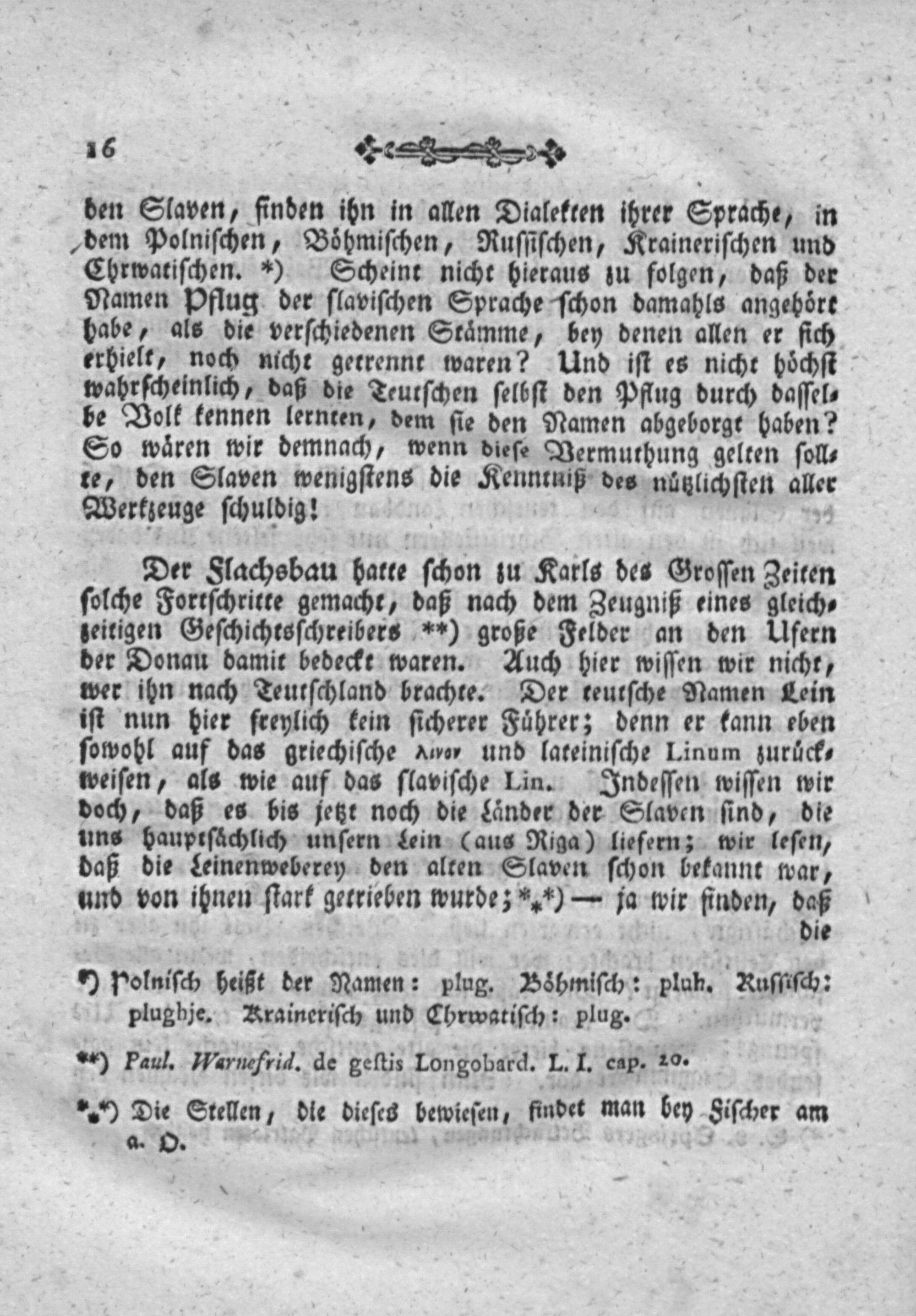 0) Polniſch heißt der Namen: plug. Boͤhmiſch: plah. Ruſſiſch: plugbje. Kraineriſch und Chrwatiſch: plug. **) Paul. Harusfrid. de geſtis Longobard. I. I. cap. 10.