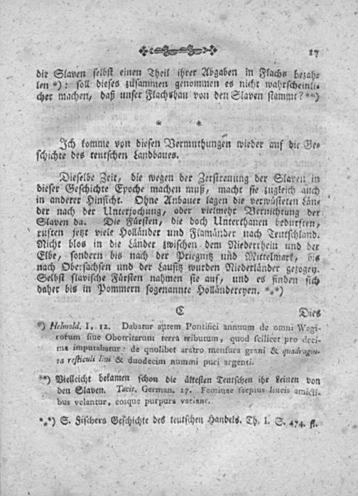 **) Vielleicht bekamen ſchon die aͤtteſten Teutſchen ihr Leinen von den Slaven. Tacit. German. 17. Feminae fuepius lineis amadi. bus velantur, cosque purpura varianc.