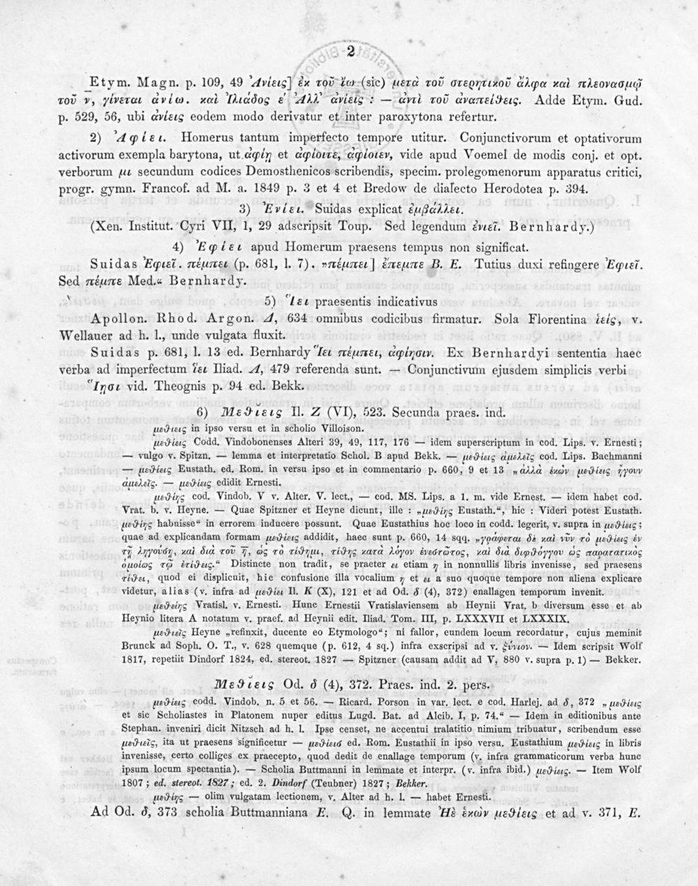 2) plei. Homerus tantum imperfecto tempore utitur. Conjunctivorum et optativorum activorum exempla barytona, ut&ꝓο&mν et dioure, c†ioler, vide apud Voemel de modis conj. et opt. verborum dι secundum codices Demosthenicos scribendis, specim. prolegomenorum apparatus critici, progr. gymn. Francof. ad M. a. 1849 p. 3 et 4 et Bredow de dialecto Herodotea p. 394.
