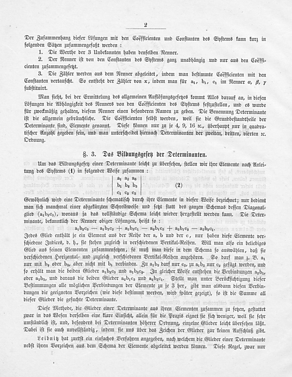 Leibnitz hat zuerſt ein einfaches Verfahren angegeben, nach welchem die Glieder einer Determinante nebſt ihren Vorzeichen aus dem Schema der Elemente abgeleitet werden können. Dieſe Regel, zwar nur