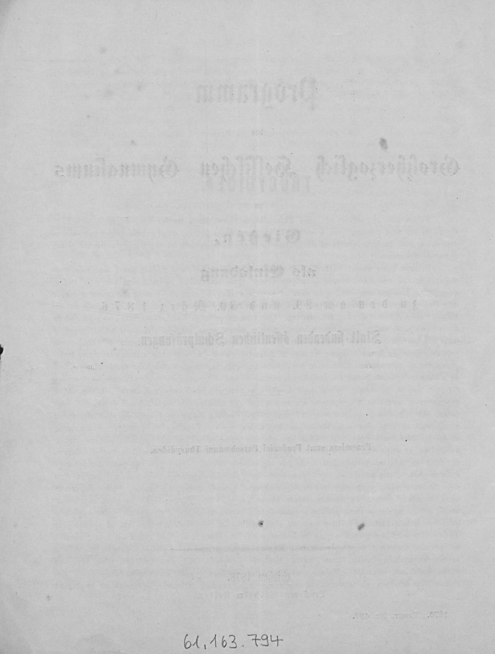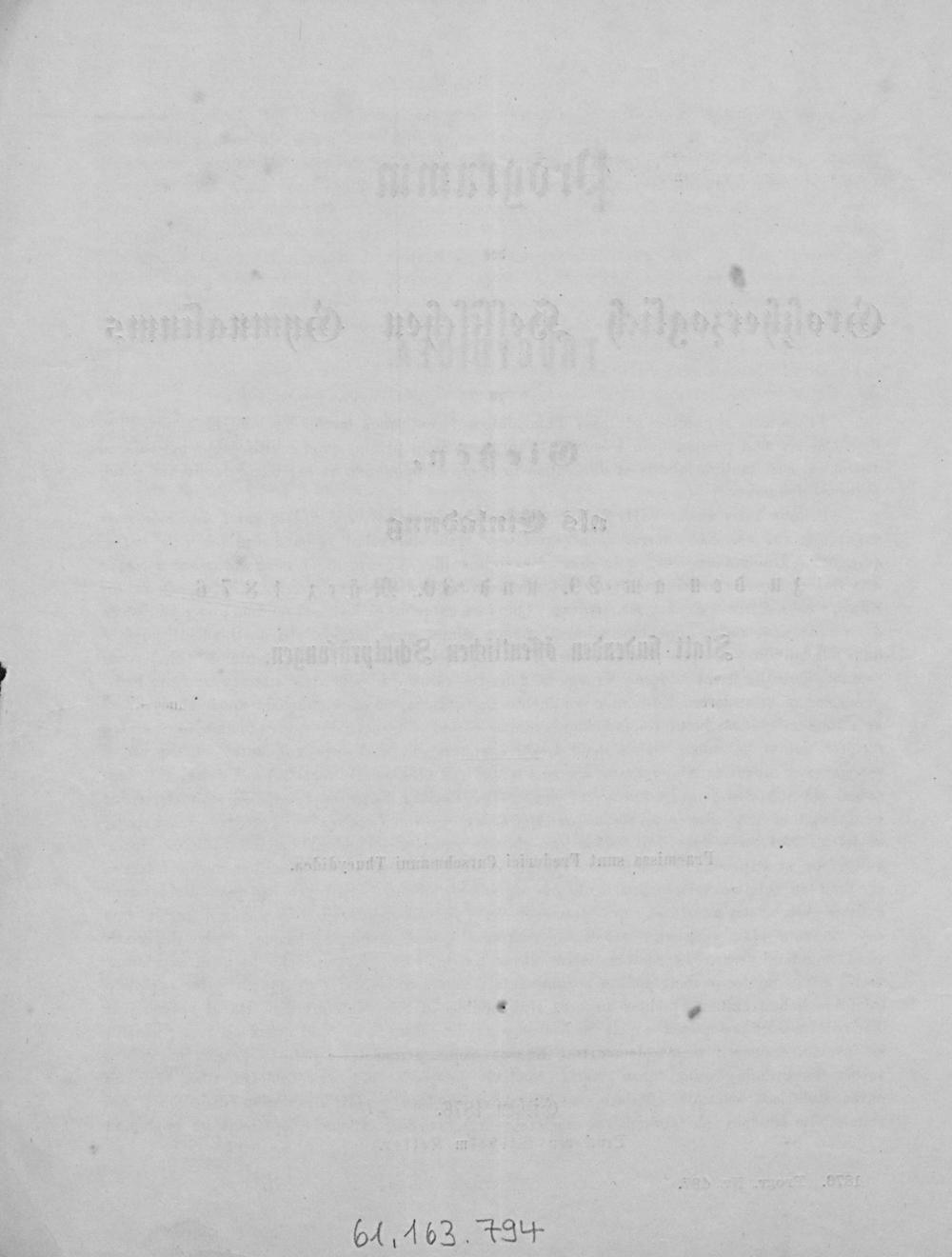 Programm des Großherzoglich-Hessischen Gymnasiums zu Gießen