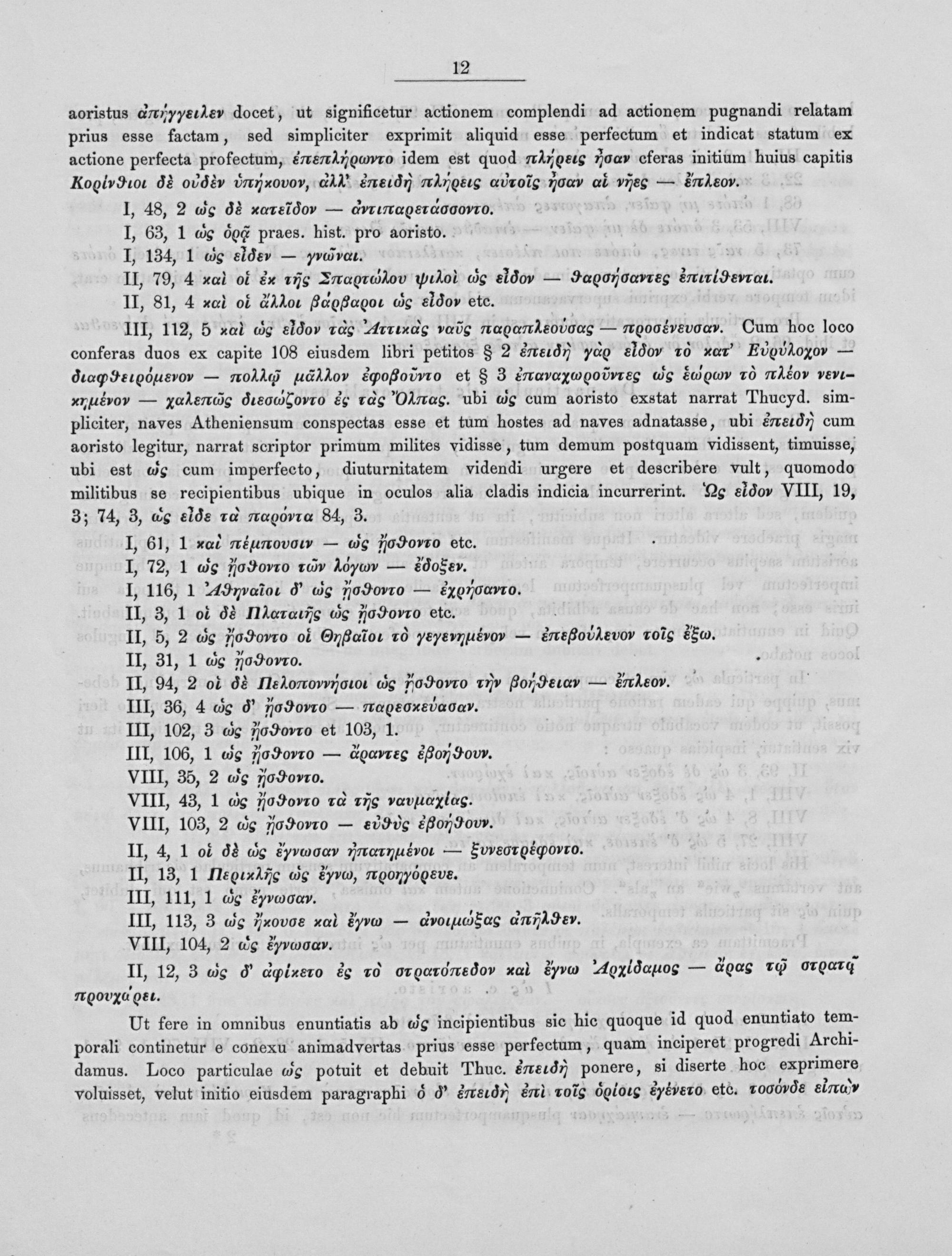 III, 112, 5 æl* dα eldov zdo Arrixde»aνςα ασνσσρσααα‿εονσσςσα— r000(»ulα. Cum hoc loco conferas duos ex capite 108 eiusdem libri petitos§ 2 deει„⁴o ldον 16 zœτ E⁵οxνον— aααφσνσέιομεν— 011 G.20 Sgooro et§ 3 d&απασααόοο νντνες ⁴⁴ς ³⁴⁴μσ ⁷τ ππαέον vενι vn⁴εεο— ga⁴enς dεεααςσοτο e& de Olαασς. ubi de cum aoristo exstat narrat Thucyd. sim- pliciter, naves Atheniensum conspectas esse et tum hostes ad naves adnatasse, ubi&mτει⁴α⁶ν cum aoristo legitur, narrat scriptor primum milites vidisse, tum demum postquam vidissent, timuisse, ubi est ag cum imperfecto, diuturnitatem videndi urgere et describere vult, quomodo militibus se recipientibus ubique in oculos alia cladis indicia incurrerint. Lo eldo» VIII, 19, 3; 74, 3, slds 1⁴ 1ππασννια 84, 3.