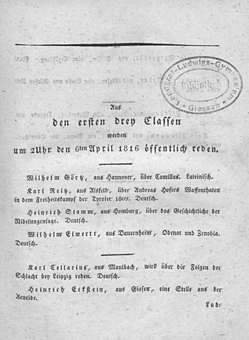 Karl Cellarius, aus Maulbach, wird über die Folgen der Schlacht bey Leipzig reden. Deutſch.