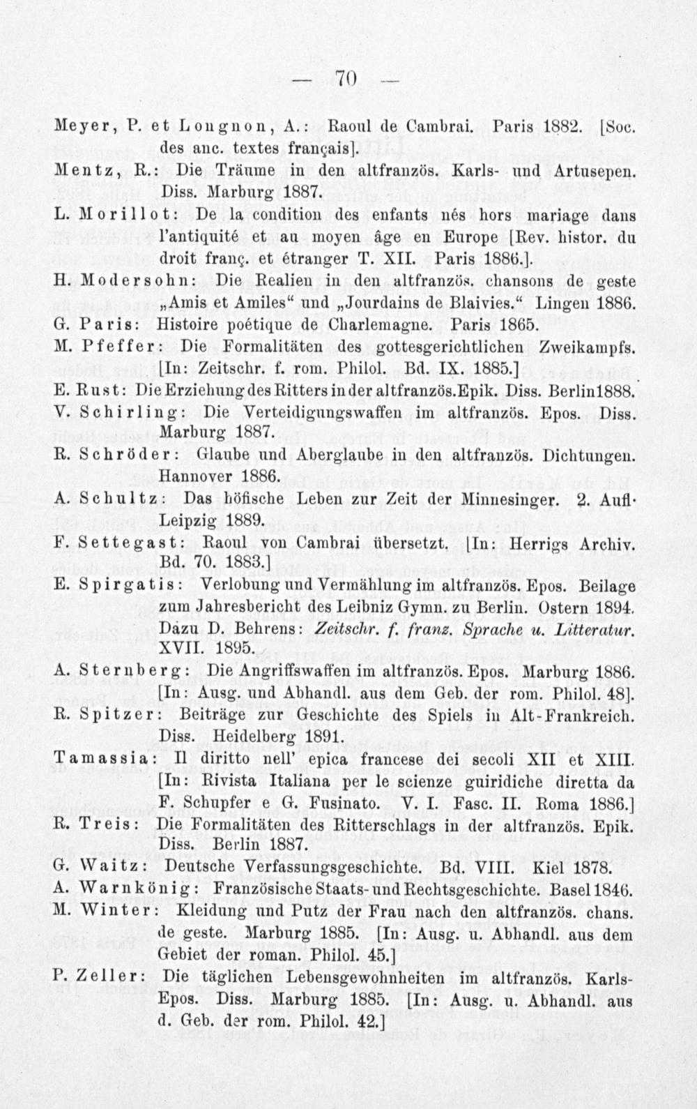 P. Zeller: Die täglichen Lebensgewohnheiten im altfranzös. Karls- Epos. Diss. Marburg 1885.[In: Ausg. u. Abhandl. aus d. Geb. der rom. Philol. 42.]