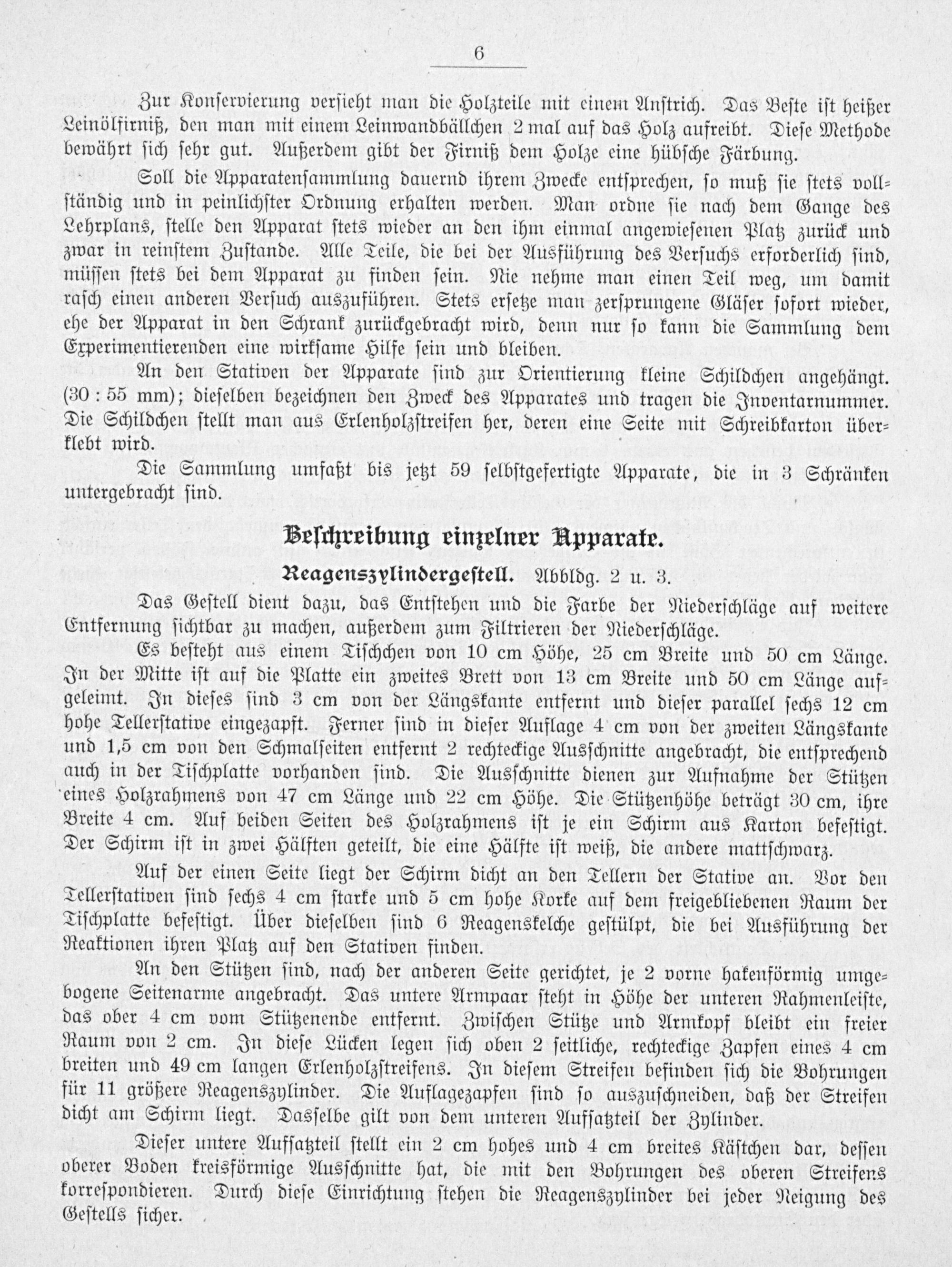 Die Sammlung umfaßt bis jetzt 59 ſelbſtgefertigte Apparate, die in 3 Schränken untergebracht ſind..