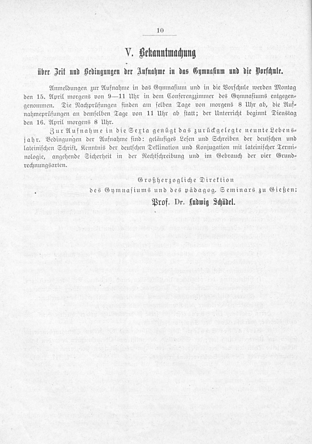 Großherzogliche Direktion des Gymnaſiums und des pädagog. Seminars zu Gießen: