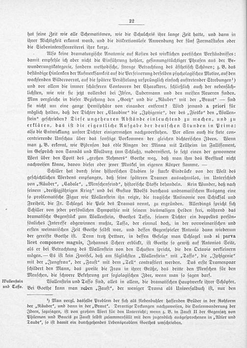 ¹) Man vergl. dasſelbe Problem der ſich als Nebenbuhler haſſenden Brüder in der Rohform der„Räuber“, und dann in der„Braut“. Derartige Deckungen nachzuweiſen, die Seelenwanderung der Ideen, ſozuſagen, iſt von großem Wert für den Unterricht; wenn z. B. in Fauſt II der Gegenſatz von Philemon und Baucis zu Fauſt ſelbſt zuſammenfällt mit dem jugendlich ausgeſprochenen in„Adler und Taube“, ſo iſt damit ein durchgehendes Lebensproblem Goethes umſchrieben.