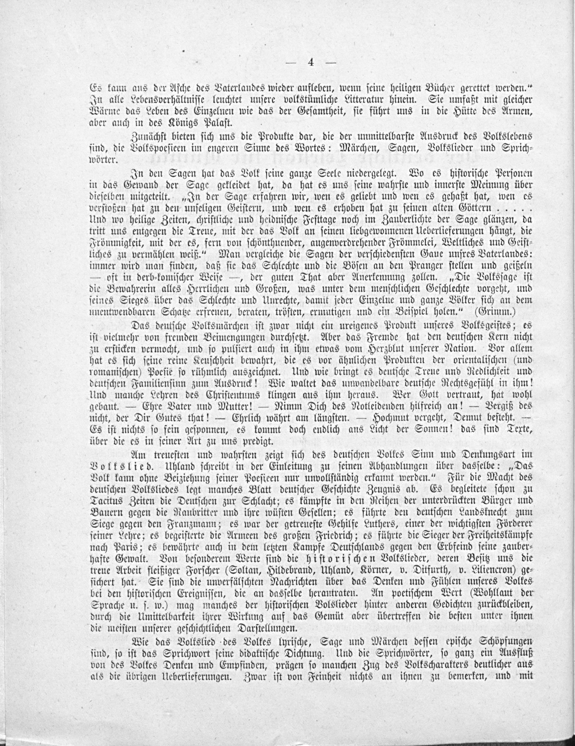 Es kann aus der Aſche des Vaterlandes wieder aufleben, wenn ſeine heiligen Bücher gerettet werden.“ In alle Lebensverhältniſſe leuchtet unſere volkstümliche Litteratur hinein. Sie umfaßt mit gleicher Wärme das Leben des Einzelnen wie das der Geſamtheit, ſie führt uns in die Hütte des Armen, aber auch in des Königs Palaſt.