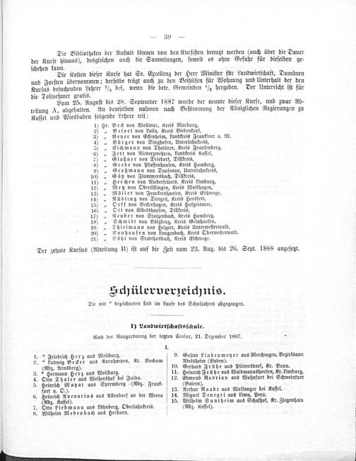 die Teilnehmer gratis. 1„. Vom 25. Auguſt bis 28. September 1887 wurde der neunte dieſer Kurſe, und zwar Ab⸗