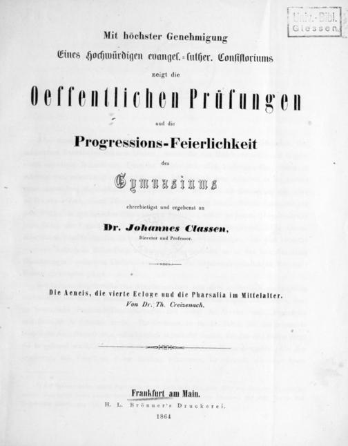 Die Aeneis, die vierte Ecloge und die Pharsalia im Nittelalter. Von Dr. Th. Creizenach.
