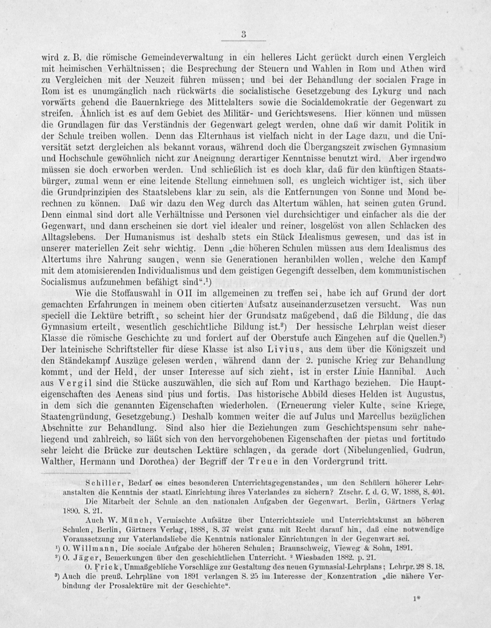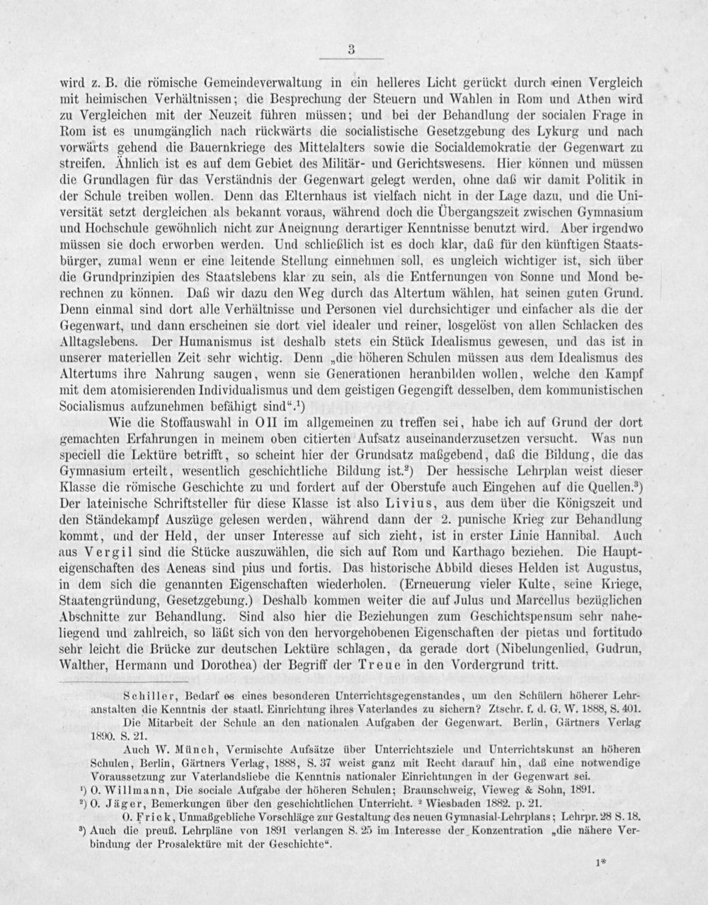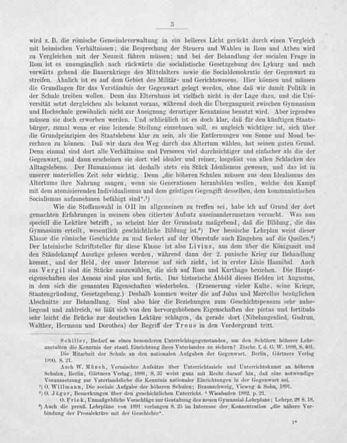 ¹) O. Willmann, Die sociale Aufgabe der höheren Schulen; Braunschweig, Vieweg& Sohn, 1891. ²) O. Jäger, Bemerkungen über den geschichtlichen Unterricht. ² Wiesbaden 1882. p. 21. 0. Frick, Unmaßgebliche Vorschläge zur Gestaltung des neuen Gymnasial-Lehrplans; Lehrpr. 28 S. 18. ³) Auch die preuß. Lehrpläne von 1891 verlangen S. 25 im Interesse der Konzentration„die nähere Ver- bindung der Prosalektüre mit der Geschichte“. 1*