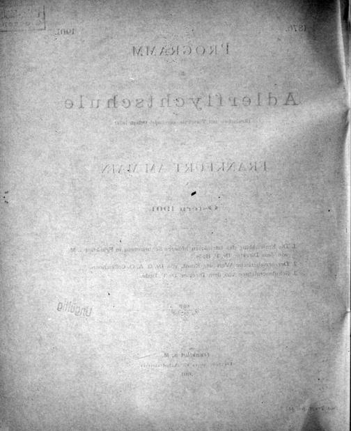 Programm der Adlerflychtschule (Realschule mit Vorschule, gegründet Ostern 1876) zu Frankfurt am Main