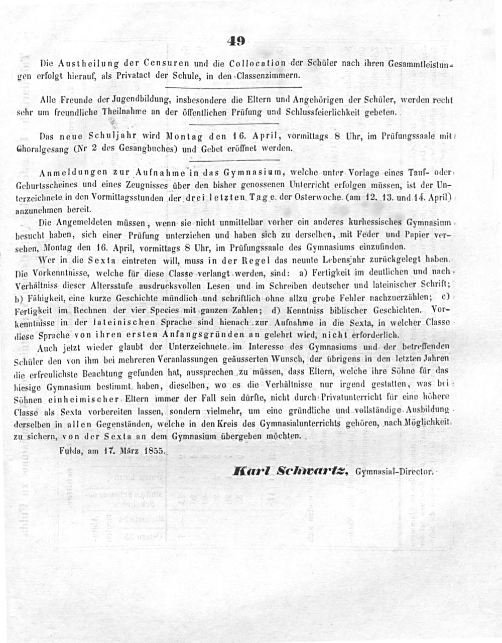 Fulda, am 17. März 1855.