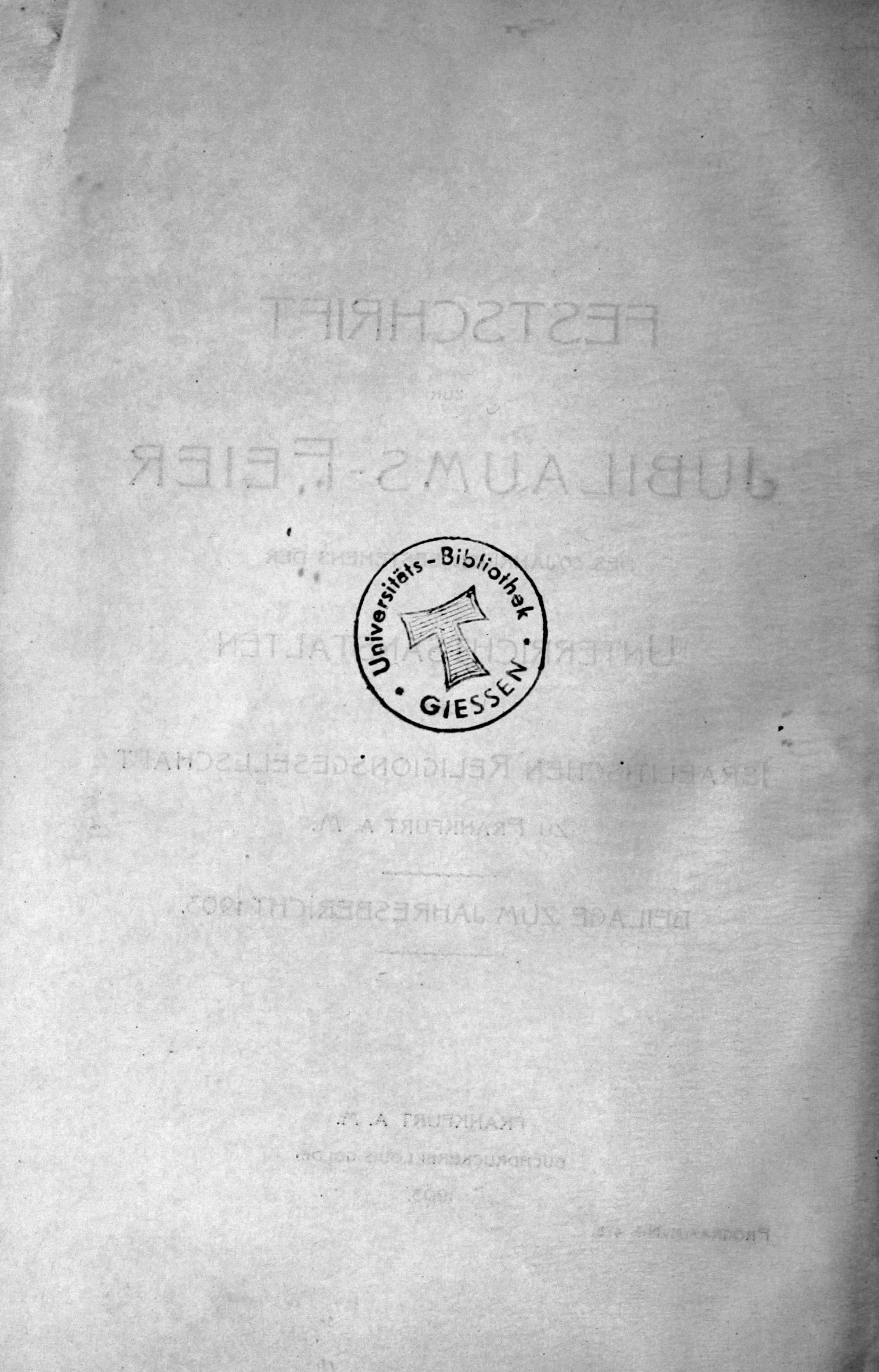 Festschrift zur Jubiläums-Feier des 50jährigen Bestehens der Unterrichtsanstalten der Israelitischen Religionsgesellschaft zu Frankfurt a.M. 1903